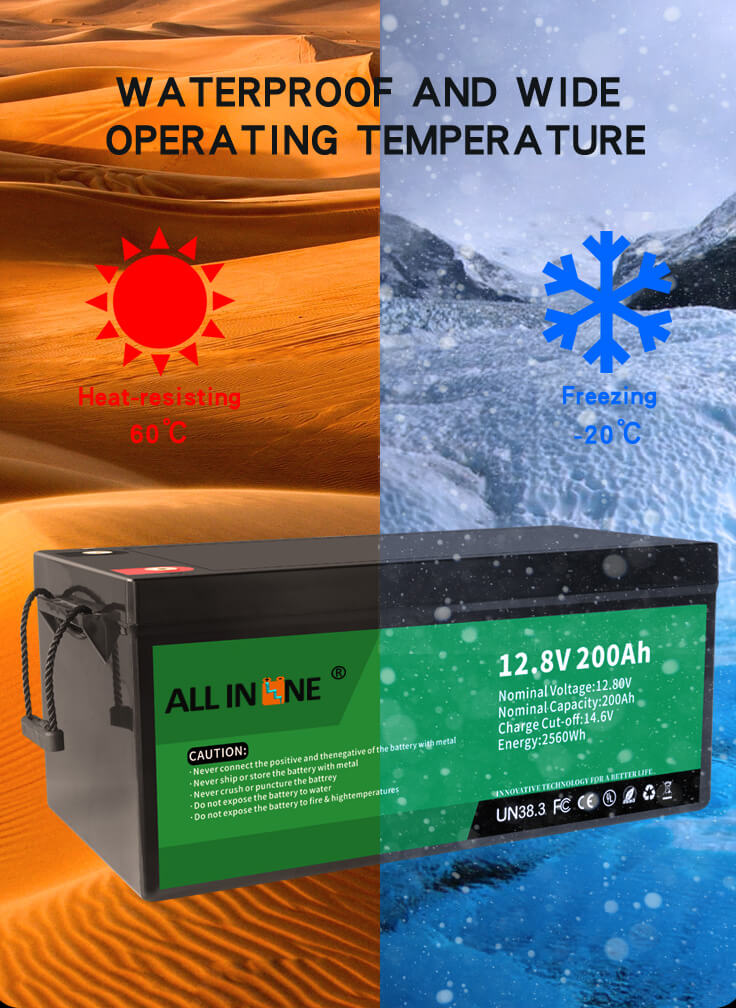 Ова 12.8В 200Ах ЛФП батерија може бити савршена замена за АГМ/ГЕЛ батерију, АЛЛ ИН ОНЕ такође нуди прилагођене батерије различитог капацитета, димензија и функција према специфичним захтевима купца. У поређењу са оловним батеријама АГМ/ГЕЛ, решења за замену АЛЛ ИН ОНЕ Ли-ион (ЛиФеПО4) имају следеће предности: